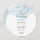 Um redemoinho de mármore em azuis delicados cria um belo design neste convite redondo. Adornado com uma cruz. Parte da "Coleção Billy".