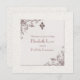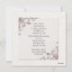 Um quadrado branco texturizado é a base de um quadrado secundário com cantos antigos florescentes de rosa e uma bela cruz central. Este convite tradicional é adequado para qualquer celebração religiosa.