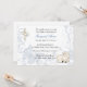 Convite cristão com carneiro em fundo azul pálido de floral e borboleta e cruz com dois corações. Este convite é adequado para a primeira comunhão sagrada, confirmações, batismos ou batizações. Pode ser facilmente personalizado com os detalhes do seu evento. Os convites são concluídos com envelopes.