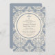Um convite religioso com um padrão sofisticado, em uma cor creme, contra uma cinza azul que está sobreposta com um grande centro circular que guarda sua informação.<a href='http://www.freepik.com/free-vector/cmyk-floral-wedding-invitation_763011.htm'>Concebida por Freepik (). </a>() A placa é fácil de personalizar com o seu texto, fonte, cor da fonte, opções de forma de papel e escolha de seis tipos de papel.<br/>() Não exatamente o que você está procurando? Todos os nossos produtos podem ser personalizados para atender às suas necessidades sem custos adicionais.<br/>() Basta entrar em contato conosco em heartfelthelper@gmail.com<br/>() Coordenando os produtos disponíveis: Apenas nos pergunte!