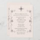 Um fundo areia-colorido é aparado com uma festão paralela da folha e de linhas curvy artísticas e uma cruz filigrana no centro. Estes cor e design neutros são apropriados para toda a celebração religiosa e um ou outro género. br/>