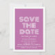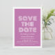 Anúncio Retro de Salvar a Data em fúcsia radiante e branco com um design de tipografia moderno e funky. Este convite de salvar a data é fácil de personalizar com os detalhes do seu casamento. Para mais opções de personalização, clique no botão Personalizar.