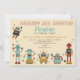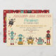 Os robôs retros bonitos e engraçados decoram este convite de aniversário do divertimento!