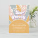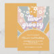 convite de primeiro aniversário inspirado em duas Flores de Sunshine Retro Groovy com margaridas e fontes e cores boho dos anos 70.