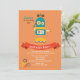 Um robô teal e hipster sobre rodas é uma maneira divertida de convidar amigos para uma celebração de aniversário.