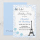 Convite de aniversário com tema de Paris e combinação de cor azul.