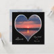 Procurando um convite romântico para o casamento? O que poderia ser mais romântico do que um coração de dentro do pôr do sol? Este romântico convite para o casamento do coração do pôr do sol mostra um lindo pôr do sol sobre a dentro de água um coração com uma fronteira branca sobre um fundo negro. A palavra "Amor" aparece à esquerda do coração com os nomes da noiva e do noivo à direita do coração. Na parte de trás do convite está uma fotografia sutil do pôr do sol na qual todos os detalhes importantes do casamento são colocados. Simplesmente um belo e romântico convite para o casamento. Direitos autorais
