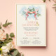 Um convite de casamento elegante e romântico com duas pombas segurando uma faixa cor-de-rosa no topo sobre um galho de folhas, junto com uma fonte moderna, faz um convite de casamento único em um lindo fundo colorido. A parte de trás é uma cor de coral escura. Todas as cores e textos são facilmente atualizados por você!