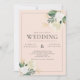 Um bonito convite de casamento, cor-de-rosa e verde-sábio, com dois bouquets de rosa-d'água em branco e verde, com uma mistura de brilho falso. Excelente para um casamento no inverno.