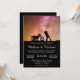 Convide seus convidados com este elegante convite de casamento apresentando uma silhueta de casal romântica contra um belo fundo estrelado. Basta adicionar os detalhes do seu evento neste modelo fácil de usar para torná-lo um convite de tipo único.