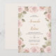 Este elegante convite para o casamento mostra um belo design floral pastel com rosas cor-de-rosa e marfim esculpindo os detalhes. Apresentando fontes clássicas de serifa e roteiro elegante, este convite é perfeito para uma celebração romântica, eterno e sofisticada de casamento. Personalize-o facilmente com seus nomes, data e local.