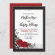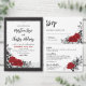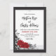 Este romântico chamado convite de casamento de rosa apresenta uma estrutura preta com duas rosas vermelhas entrelaçadas por folhas e espirais pretas. O verso do convite é um quadro preto sobre um fundo vermelho. Compre os itens de casamento coordenadores para combinar (vendidos separadamente). Itens correspondentes podem ser encontrados em nossa coleção de 'Rosas vermelhas Românticas Interligadas'.