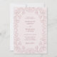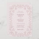 Convite Romântico para Casamento Rosa Esmagado. Romântico e eterno, este convite de casamento cor-de-rosa escamoteado apresenta rosas florais de linha de vintage, arranjados numa moldura química que pode ser usada em qualquer época de casamento. Adicione um toque de elegância moderna e clássica ao seu dia especial com estes na moda e belos convites para casamento. Texto Rosa empoeirado sobre fundo rosa pálido.