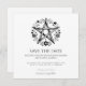 Um pentáculo de madeira, entrelaçado com florais vibrantes, está no coração desse convite de casamento para salvar a data, simbolizando os elementos, masculino e feminino, e o ciclo eterno da vida. Junte-se a nós para celebrar o amor e a unidade como Rosamund e Roland são casados. Convidamo-lo para esta celebração com o nosso convite de casamento único, centrado na natureza, rústico, à terra. A noiva e os nomes de noivos curvam-se em torno do pentáculo floral de estrelas de madeira para um efeito elegante com uma antiga face clássica.