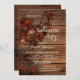 Um convite à festa de solteira romântico que inclui uma árvore de outono com folhas, rosas e lanternas acesas coloridas sobre um fundo de madeira rústica.