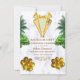 Festa chica vibrante, romântica e caprichosa de folhagem verde brilhante com uma vibração de primavera de palma sobre fundo de mármore com um smoking faz um cartão de solteiro de excelente