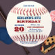 Este convite temático de Baseball é perfeito para celebrações de aniversário, Reprodução ou Festas da Série Mundial. Cada linha de texto é perfeitamente personalizável para dizer exatamente o que você quer!