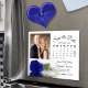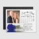 Estes belos cartões magnéticos são a forma perfeita de deixar a sua família e amigos saberem salvar a data do seu próximo casamento. A design romântica apresenta um solteiro longo e vívido, azul real ou rosa de cobalto gravado em seu lado, refletindo ou espelhado em uma piscina d'água com sua foto acima dela. À direita está um calendário personalizável mostrando seu mês de casamento com um coração ao redor do seu dia especial. Conveniente e prático, este cartão é certamente agradável.
