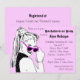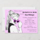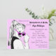 Um fundo cor-de-rosa com um gráfico preto e branco de uma mulher numa cauda de um pônei e com um olhar suave sobre o topo dos seus óculos escuros cor-de-rosa adorna a frente deste convite. Muitos textos personalizáveis na frente para todas as informações de seu partido! Texto personalizável na parte traseira das informações do registro e instruções de direção ou quaisquer outras informações que você queira adicionar. Comprar em massa e guarde!
