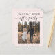 Operações de rosa claro favoráveis ao orçamento ou anúncio de casamento privado e convite de festas de recepção ou celebração. A frente apresenta "Felizmente, Sempre Depois da Festa" na tipografia moderna e um roteiro de na moda com balsas, sua foto, nomes e data de casamento. No verso, personalize seu anúncio de casamento e seu convite de recepção em mais detalhes, faça o upload do seu site de casamento QR code para os convidados digitalizarem suas fotos de casamento, todos os detalhes e para RSVP on-line, e adicione seus nomes em um roteiro semelhante a assinatura.