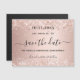 Um cartão magnético Save the Date para uma Quinceañera, 15 festa de aniversário. Um fundo rosa de ouro decorado com falso brilho, faíscas. Personalize e adicione uma data e nome/idade. O texto: Salvar a Data é gravado com um script de estilo com letra de tendência grande com alternâncias.
