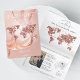 Destino de Casamento de Convite para Mapa do Mundo Moderno e Elegante, como passaporte com mapa mundial de ouro rosa