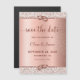 Anuncie seu próximo casamento com este elegante casamento de ouro rosa, salve o ímã de data, com damasco de brilho no topo e no fundo, e a elegante tipografia de script.