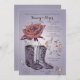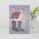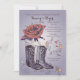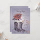 Comemora uma ocasião especial com um tema do sudoeste? Este convite lindo é perfeito para qualquer celebração feliz. Apresenta uma rosa aberta com um par de botas western e corações e espirais caprichosos.