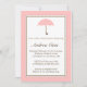 Este convite para o querido apresenta um guarda-chuva rosa suave cercado por uma borda sólida e diamante em rosa e mocha. Personalize este convite com os detalhes do chá de fraldas.
