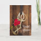 Convide os convidados com o charmoso cartão de saudação de Chá de panela Ocidental para Rosas vermelhas e Bits de Cavalo. Perfeito para dar o tom a uma fazenda rural casual, mas clássica, ou a um chá de casamento temático do rancho ocidental. Este chá de panela de estilo equestre, costume em forma de chic, rústica apresenta uma fotografia floral quintal melhorada digitalmente de flores de rosa vermelha, colar de pérolas, rédeas de cavalo e de couro com um fundo de madeira de celeiro de castanho.