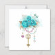 Chave de ouro antiga com rosas de turquesa de tendência, decoradas com folhas de ouro branco e miçangas cor-de-rosa e azuis. Cor agradável. Rosas de turquesa. Ouro branco. Tifania azul.