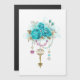 Chave de ouro antiga com rosas de turquesa de tendência, decoradas com folhas de ouro branco e miçangas cor-de-rosa e azuis. Cor agradável. Rosas de turquesa. Ouro branco. Tifania azul.