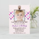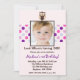 Comemore o primeiro aniversário da sua menina no estilo com este convite adorável da foto do primeiro aniversario da coruja. Mostrado em cor-de-rosa, no roxo e no marrom. Personalize facilmente com sua foto da informação e da criança do partido.