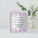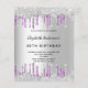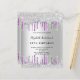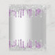 Um convite moderno, na moda e glamouroso para a festa de aniversário (ou qualquer idade) de uma mulher. Um fundo metálico prateado com aparência falsa, com púrpura gota-gota, pintura pingando. O nome é escrito com um script estilo preto moderno, escrito à mão. Personalize e adicione um nome, idade e detalhes da festa.