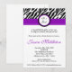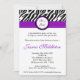 Estes convites de festas adoráveis do chá de fraldas do impressão da zebra da tira do roxo real são imprimidos em um papel liso, vibrante, matte feito sob medida 5x7 do peso do cobrir 110lb. Contem o índice do reciclado de 50%. Aperfeiçoe para qualquer chá de fraldas, nupcial, bachelorette, casamento, ou convite do aniversário.