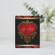 RSVP vermelho, preto e dourado com rico coração vermelho de cebola e fundo vermelho preto e ouro damasco. Esse RSVP de casamento elegante vermelho, preto e dourado é facilmente personalizado com seus detalhes de evento.