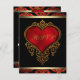 RSVP vermelho, preto e dourado com rico coração vermelho de cebola e fundo vermelho preto e ouro damasco. Esse RSVP de casamento elegante vermelho, preto e dourado é facilmente personalizado com seus detalhes de evento.