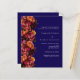 Para um casamento elegante e romântico. Um fundo azul marinho decorado com florais cor-de-rosa e cor-de-rosa e cor de pêssego. Personalize e adicione seus nomes e detalhes. Detalhes de RSVP. 1 folha = 1 convite impresso de borda a borda.