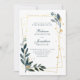 Cartão RSVP de Convite para Casamento Elegante apresenta um design na moda tipográfico com uma bela folhagem verde com design de quadro dourado num esquema de cor verde-mar e cinza. O tema de cores carregar na parte traseira da placa com texto branco. Esta papelaria de casamento está pronta para você se adaptar com os detalhes do seu dia especial. Parte de uma coleção cada vez maior.