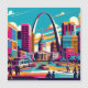 Rua Louis, Missouri Gateway Arch. Arte retrô ai mostrando a área de arco da Rua Louis com vibrações vintage.