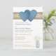 Se você está planejando um casamento informal em um local ou celeiro ao ar livre, e está querendo ter um olhar rústico e tranquilo e se sentir no seu dia especial, então esse convite de casamento romântico e suave pode ser o que você quer para juntar todo o seu tema. Com uma paleta de cor suave de azul denim, branco e castanho-bronzeado, é certamente um hit. O design apresenta um jarro de maçã azul pálido cheio de flores para o hálito do bebê e uma sobreposição marrom falso, denim azul médio e banda de renda branca que se envolve até o fundo, que tem um cheio de denim azul falso. Há um par de grandes corações de denim azul na frente que dá a ele um olhar romântico. Este convite de casamento barato tem muito charme sem um grande preço. Seria perfeito para um casamento rústico, chique ou country.