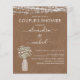 Budget Rustic Farmhouse String Lights and Baby's Breath in Jar Wedding Casal Invitation on Kraft Paper - inclui bela e elegante tipografia de roteiro com moderno Country Fazenda House Sparkle para a celebração especial do dia do casamento.