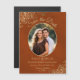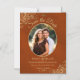 Convite Rust Orange & Gold Wedding Save Date Oval Photo