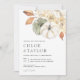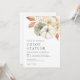 Convite de casamento que inclui folhagem de outono de aquarela com abóboras. Personalize com suas informações. Clique em "Personalizar mais" para editar o estilo, o tamanho e a cor da fonte, se desejar.