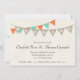 Este convite de casamento rústico contém pennentes de aparência de burlap, juntamente com tartaruga e pennentes de corais pendurados num arranjo festivo. Perfeito para um tema de casamento vintage, rústico ou ao ar livre. Personalize o texto dos Pennants para atender às suas necessidades. Entre em contato conosco para obter opções personalizadas.
