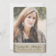 Um fundo de burlap divertido e de tendência é acentuado com um lugar falso neste anúncio de formatura bonito para a sua filha. Nome, escola e ano de aula na frente, com detalhes sobre festa ou anúncio no verso. Russo, estilo country é elegante, mas casual.