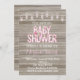 Convite para Chá de fraldas russo com faixa de jarro de mason e fundo de madeira rústica.