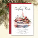 O nosso convite para o janto de Natal apresenta um conjunto de mesas para o janto de Natal com velas e galhos ocos. O convite é simples e rústico, com fundo branco e texto preto.