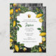 Um belo design que mostra ilustrações de safra de ramos de citros, frutas e folhagem espalhados sobre um pano de fundo de madeira rústico. Seu nome é emoldurado por um quadro branco. Convite de chá de fraldas ideal. Visite nosso compro para ver nossa coleção inteira.