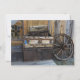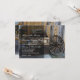 Rustic Country Western Wagon Wounding Convites com uma velha roda de vagão e troncos antigos inclinados contra uma antiga cabine. O design ocidental do país do cheio também está na parte de trás do convite. Excelente para casamentos no campo.